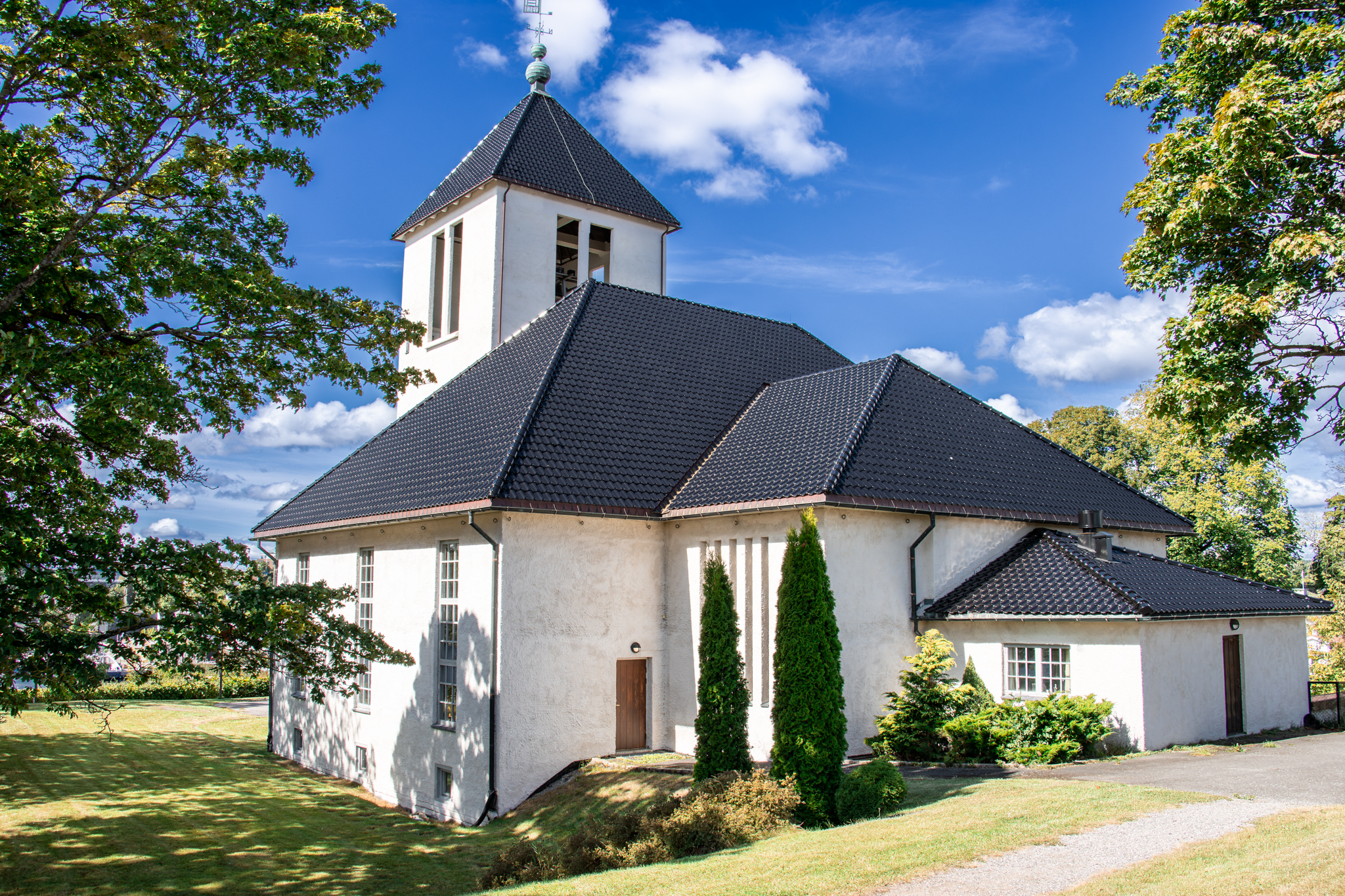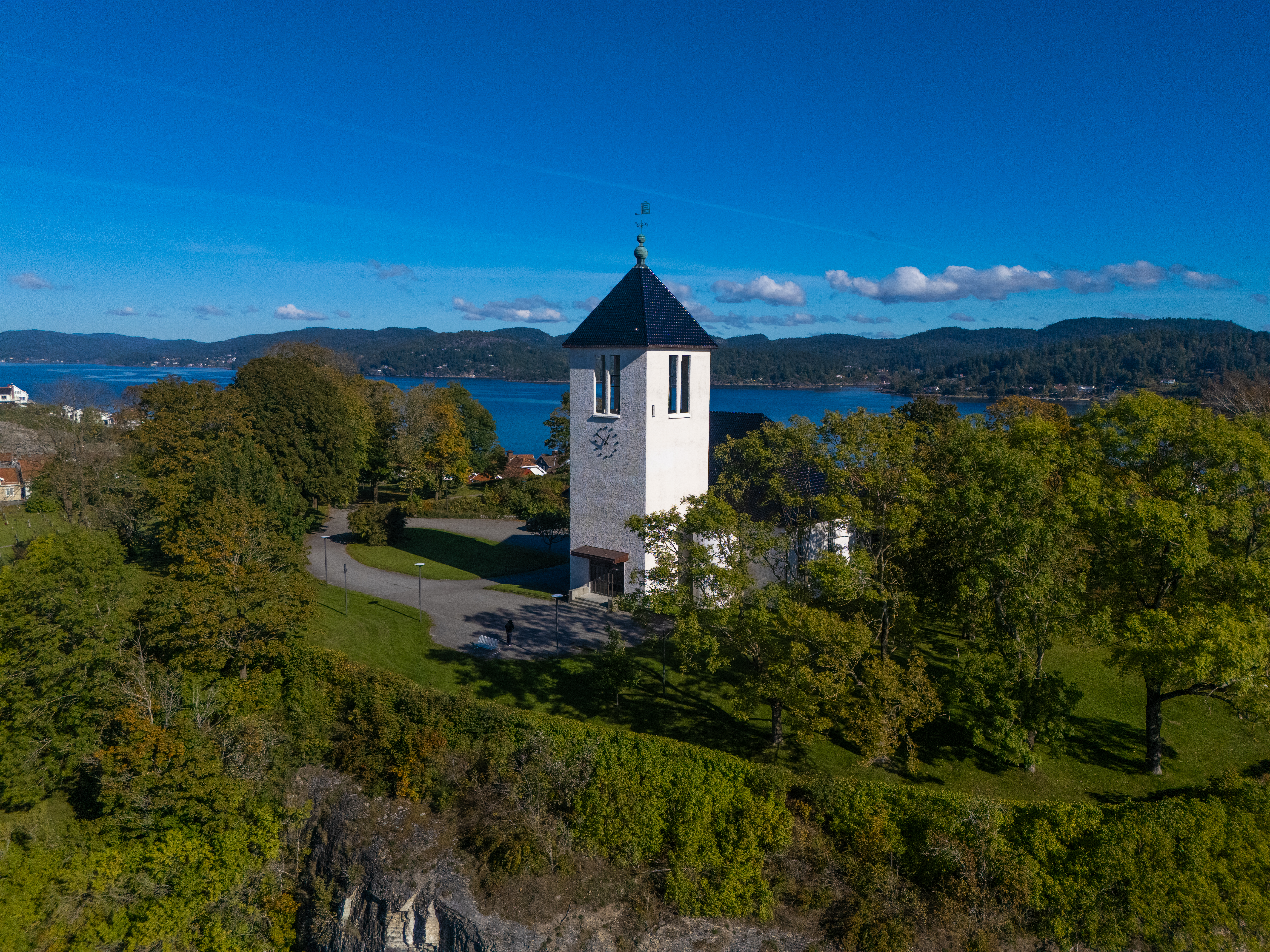 Den nåværende kirken er den tredje som er oppført på stedet. Den første kirken ble bygget i 1670 og var en laftet korskirke. Denne kirken ble erstattet i 1875 av en nygotisk kirke tegnet av JC Reuter, som sto til den brant ned i 1960. Noen av gjenstandene fra den gamle kirken ble reddet og fortsatt i bruk i dag, inkludert et krusifiks fra 1500-tallet og et døpefat i sølv fra 1733.