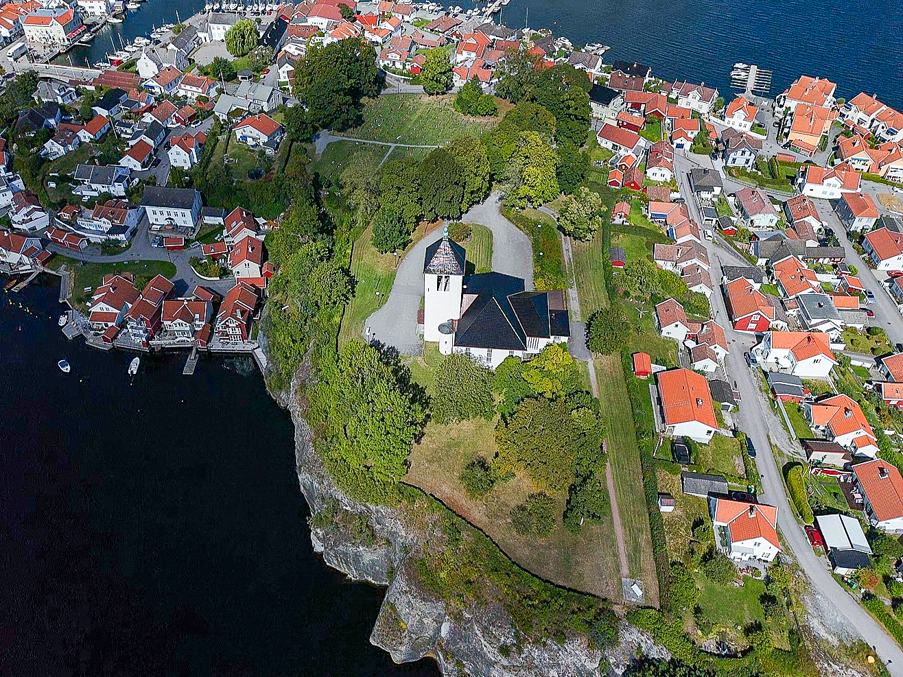 Kirken, designet av arkitektene Gudolf Blakstad og Herman Munthe-Kaas, har plass til 450 personer og er kjent for sitt tradisjonelle kirketårn i vest